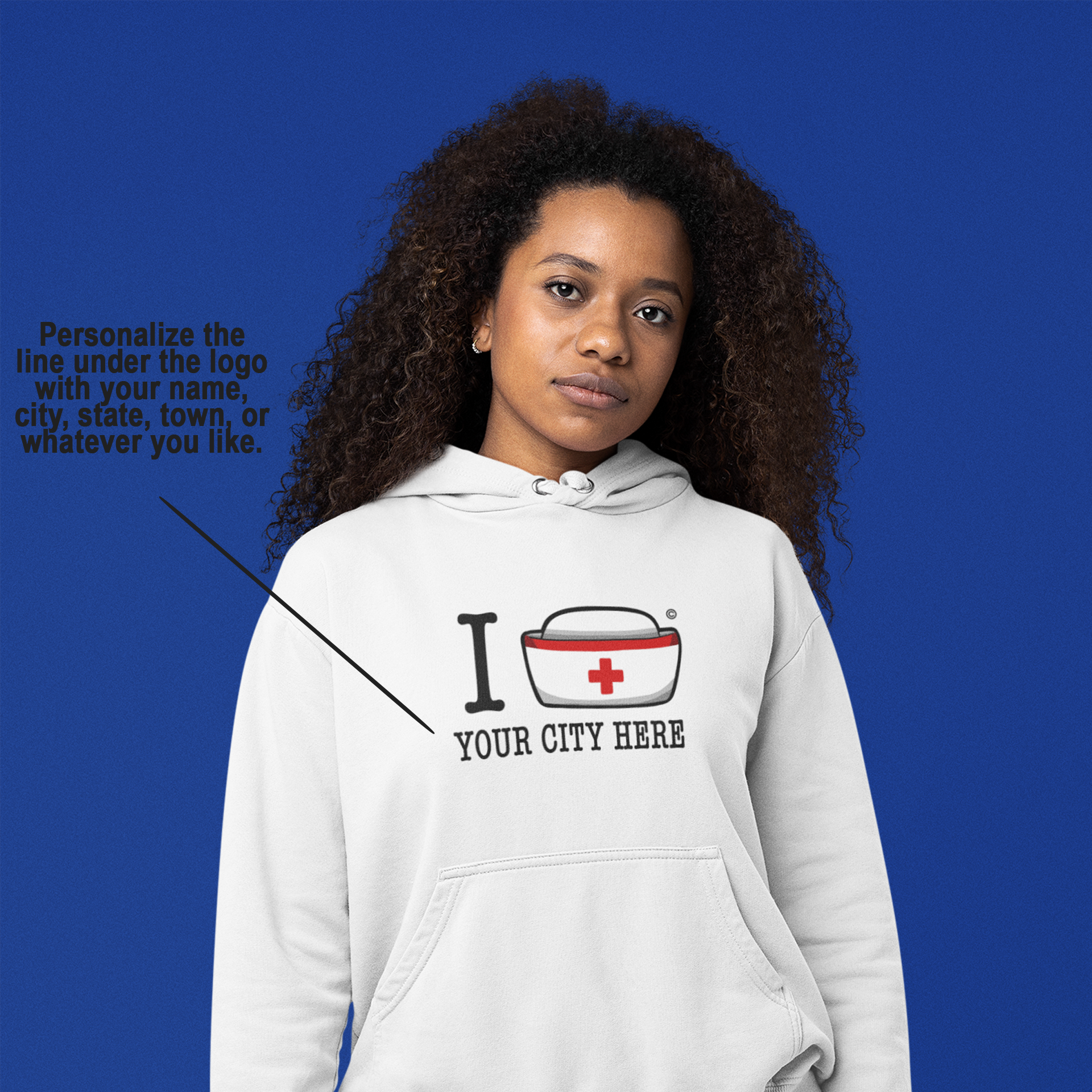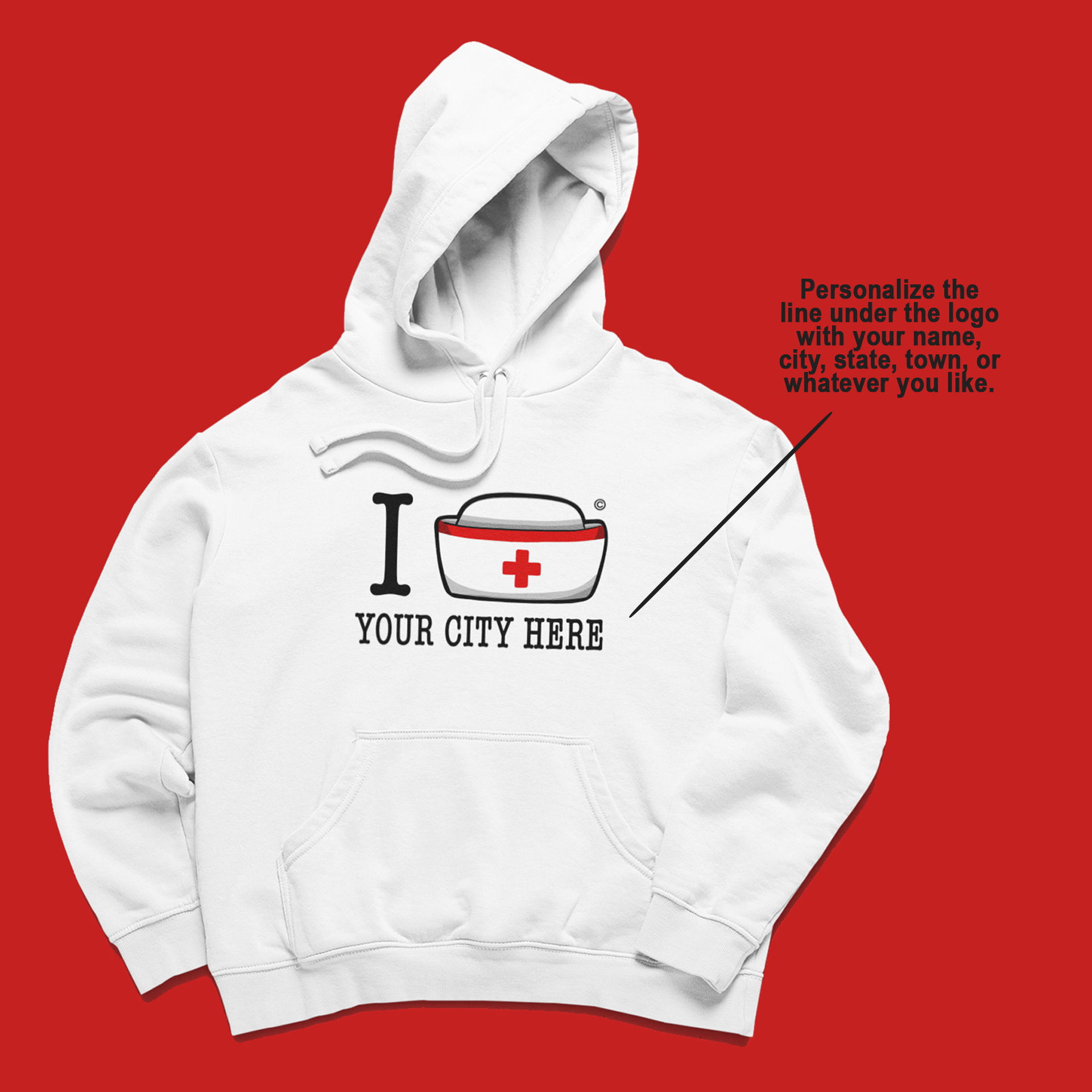Stay cozy and show off your nursing pride with the I Nurse Hoodie! This custom printed hoodie can feature your town, city or state, making it a unique and playful addition to your wardrobe. Perfect for any casual day out or lounging at home.